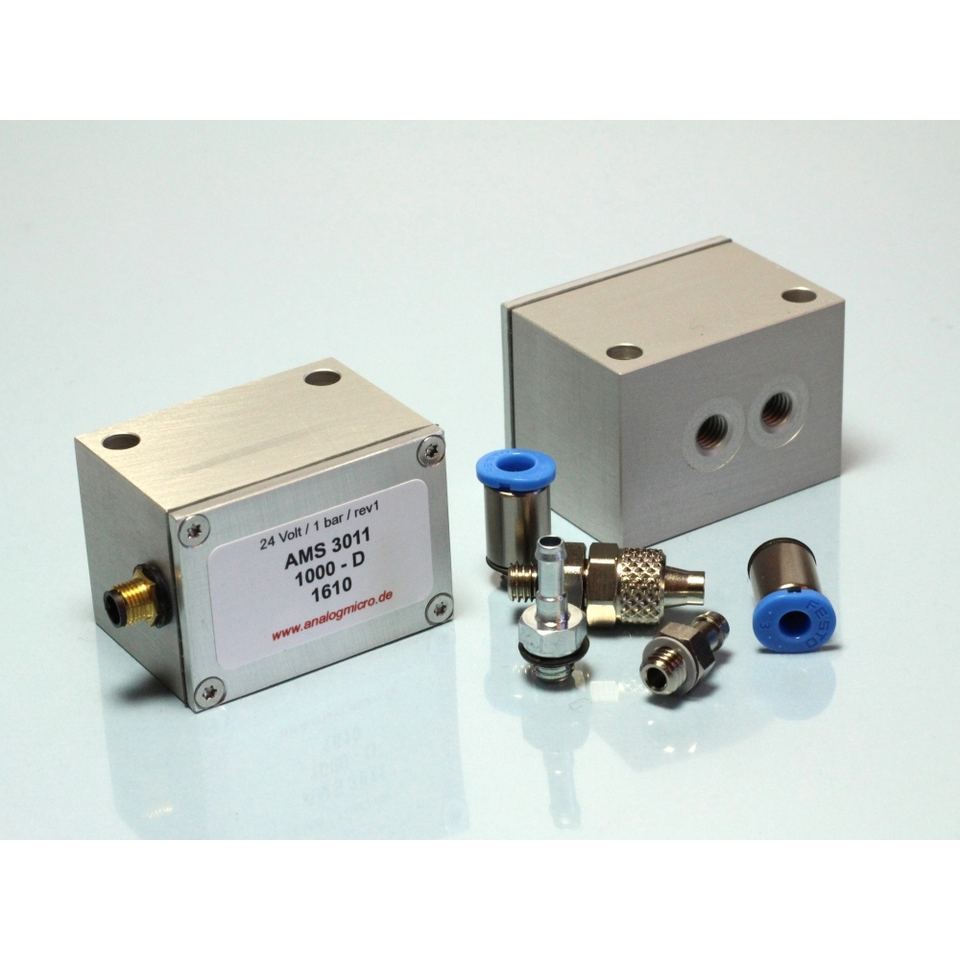 Trasmettitore di pressione miniaturizzato AMS 3011 in alloggiamento metallico, uscita di tensione analogica 0 … 5 V, tensione di alimentazione 24 V
