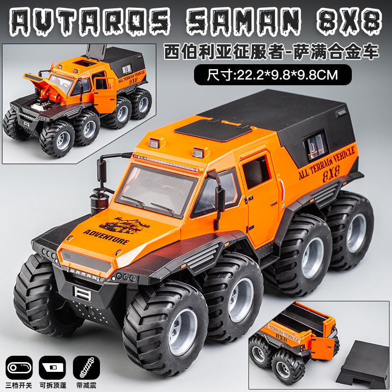 Miniauto 1/24 in lega di auto modello giocattolo conquistatore sciamano 8*8 fuoristrada modello pressofuso con suono e luce giocattolo per auto