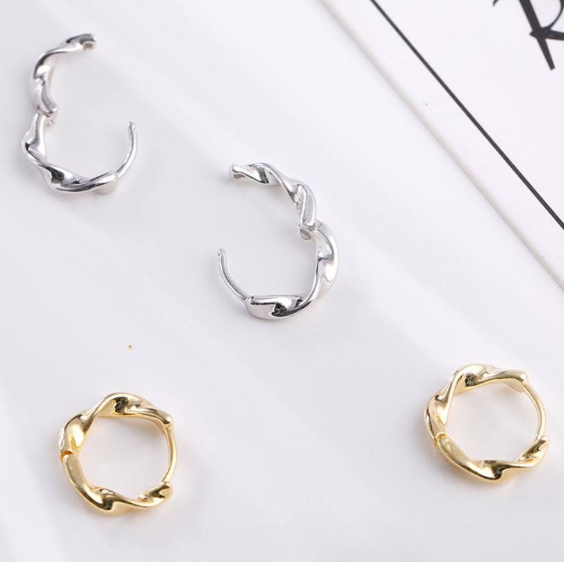 Minimal Jewellery Instagram Metal Clip on Earring Gold Plated 925 Sterling Silver Metal Twist Hoop Earrings