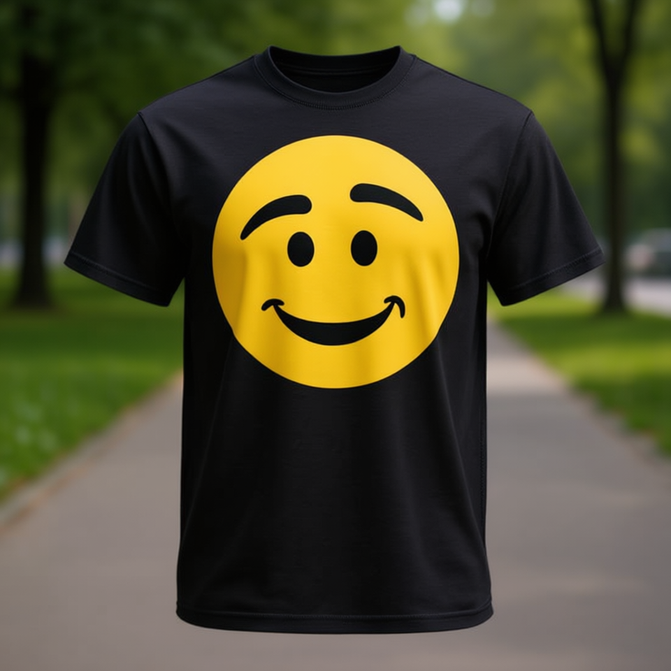 T-shirt Minimal con Grafica Faccina Sorridente Nera a Maniche Corte Unisex Girocollo Stampa Serigrafica