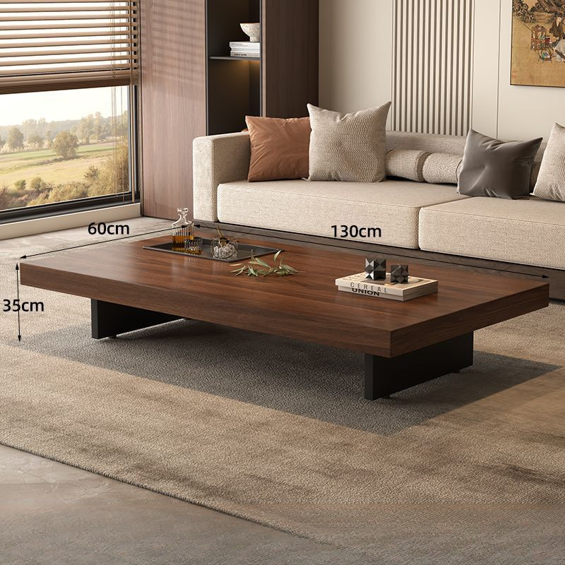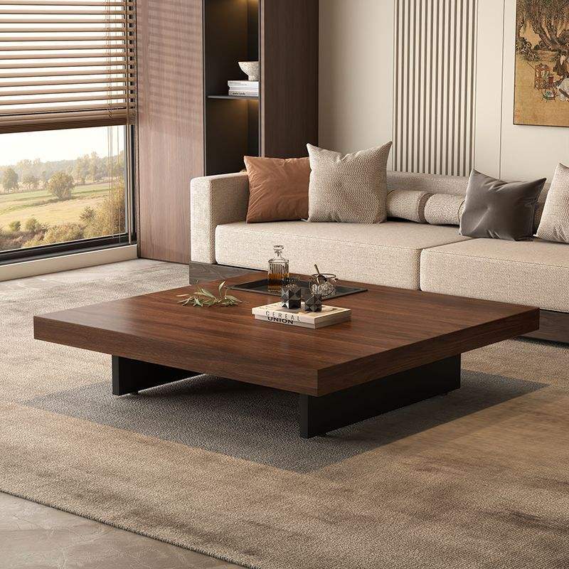 Tavolino da Caffè Minimalista Quadrato in Legno Massello di Alta Qualità Moderno e Semplice con Venature di Noce e Piedi in Acciaio Inossidabile