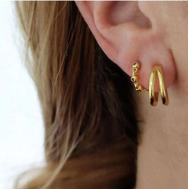 Jewelry type:18K Gold Plated Huggies Circle Double Hoop earrings