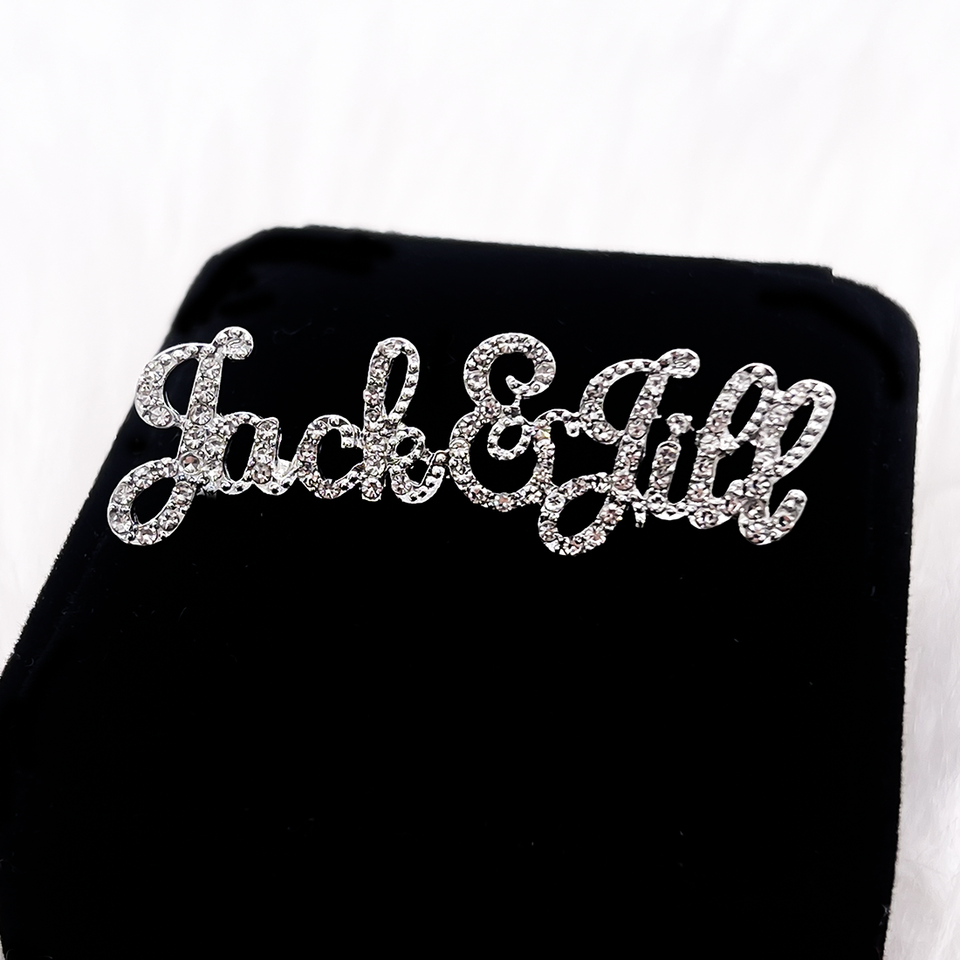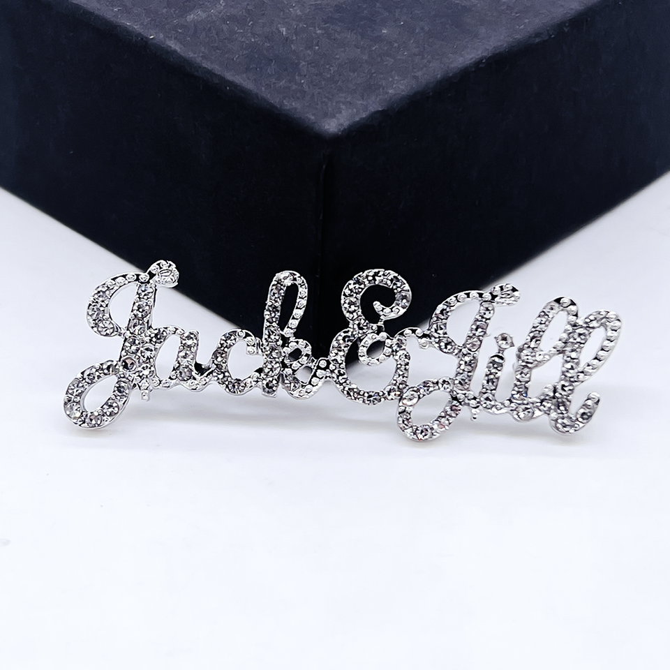 Minimalist Accent Bling White Stone Covered Design Jack and Jill of America Symbol JJ Women Brooch JJOA Fashion Jewelry Pin