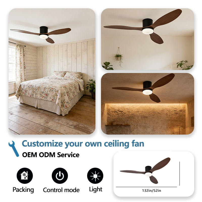 Lampadario a ventola moderno minimalista in noce nero da 52 pollici con LED a coda di pesce, telecomando, struttura in metallo, compatibile con AC 220V Agi32