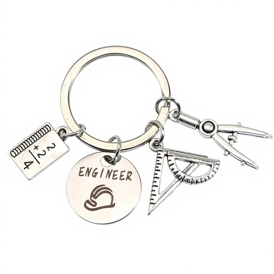 Portachiavi Minimalista in Lega di Zinco con Righello e Bussola a Cartone Animato, 26 Lettere, Semplice, Commemorativo per la Festa degli Insegnanti, per lo Studio degli Studenti