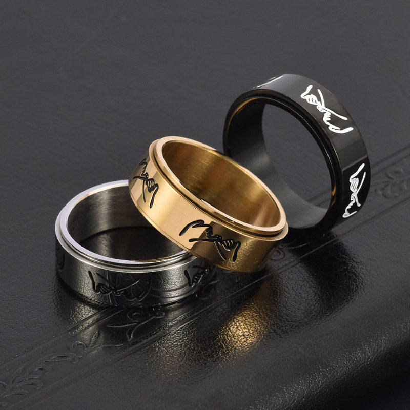 Anelli Minimalisti Personalizzati all'Ingrosso, Gioielli Funky Grandi, Impermeabili, in Acciaio Inossidabile Placcato Oro, Anello Girevole per Donne e Uomini