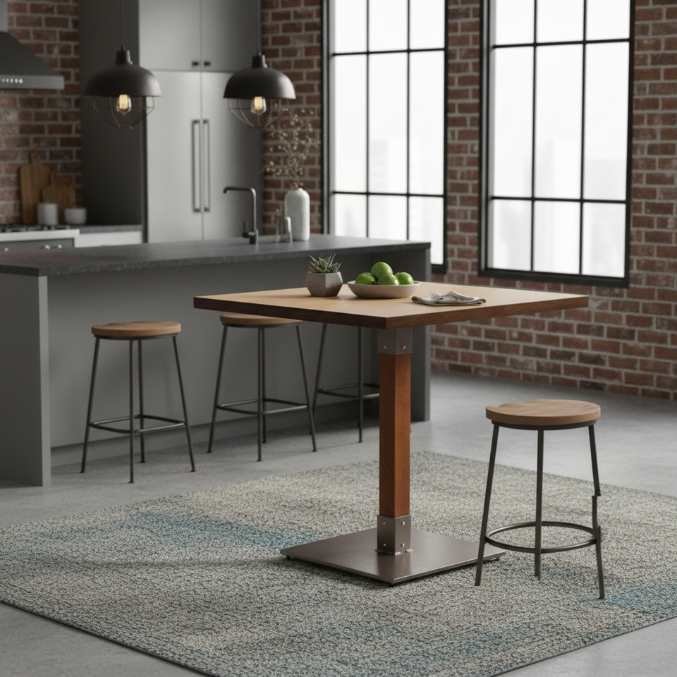 Tavolo da Pranzo in Legno Massello di Noce Chiaro dal Design Minimalista, Stabile e Assemblato per Uso Domestico, Cucina e Bar, Stile Industriale Moderno