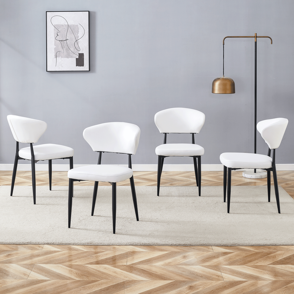 Minimalist Ergonomic White Dining Chair Curved Backrest Comfortable Design Unlocking New Sitting Posture-Pack 4 (Black White
