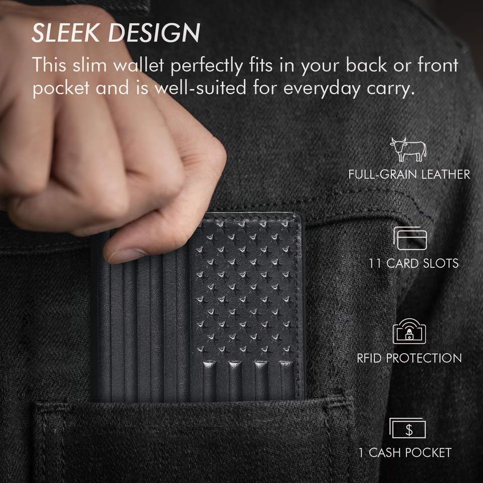 Portafoglio Minimalista Ultra-sottile con Tasca Frontale per Biglietti da Visita, Portafoglio Verticale in Pelle con RFID per Uomo, Contiene 10 Carte
