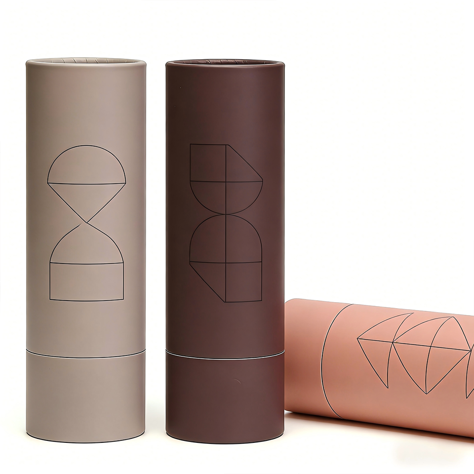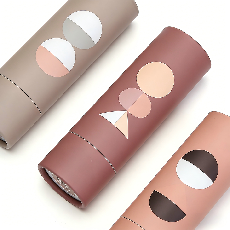 Tubo di Carta Cosmetico Minimalista Geometrico Cilindrico Fatto a Mano Ecologico Riciclabile Personalizzabile con Design a Blocchi di Colore Pastello