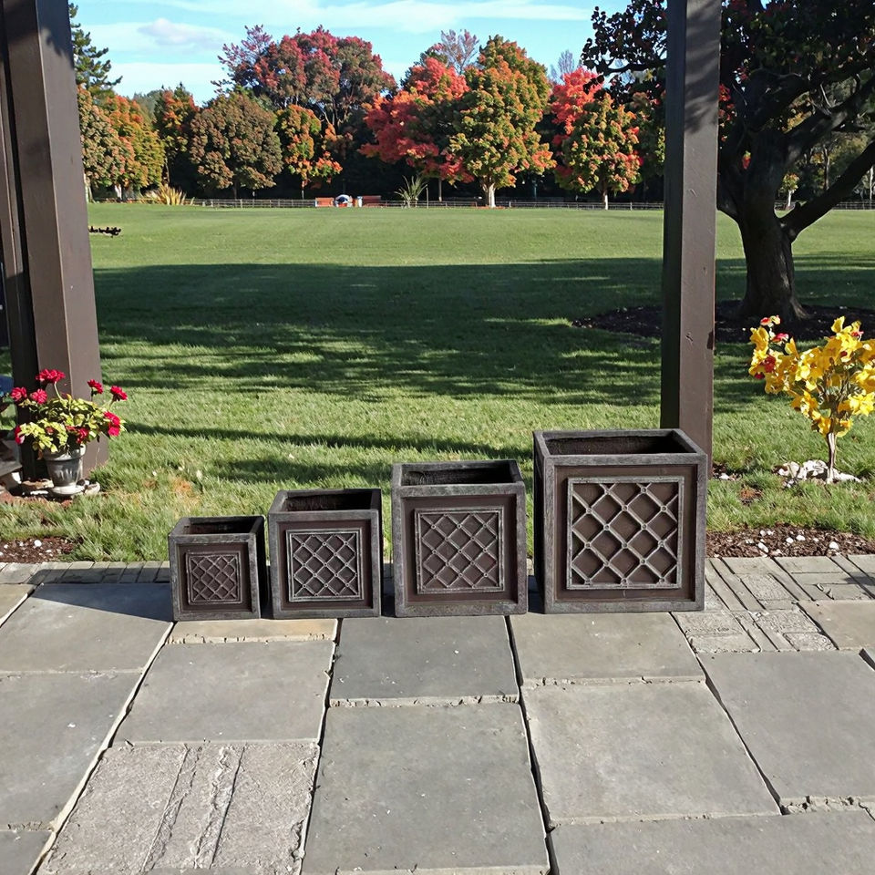 Vaso da fiori in cemento decorativo con motivo a griglia minimalista per piante da interno ed esterno usa le condizioni del pavimento