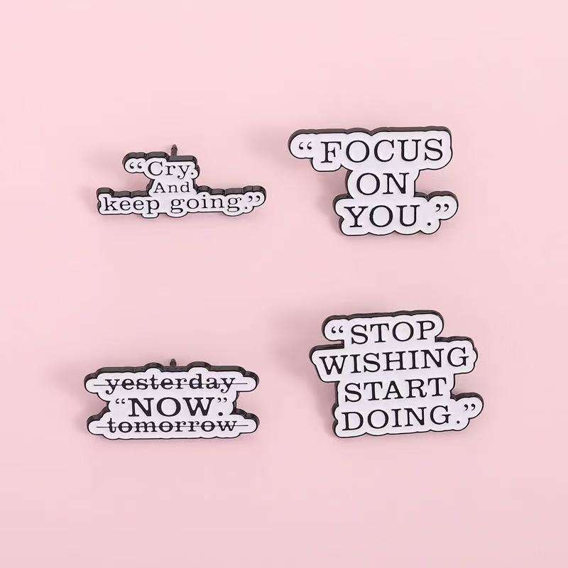 Spilla Minimalista con Frase Ispirazionale, Simpatica Spilla 'Just Do IT Brooch', Distintivo in Metallo, Accessorio di Moda Transfrontaliero