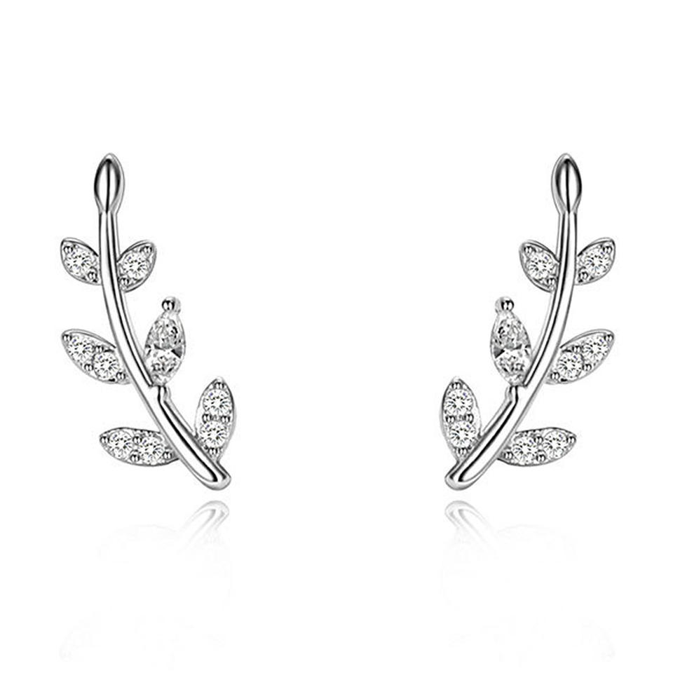 Minimalist Leaf Stud Earrings White Gold Plated Crystal Rhinestone Women's Fashion Jewelry Elegant Plant Design