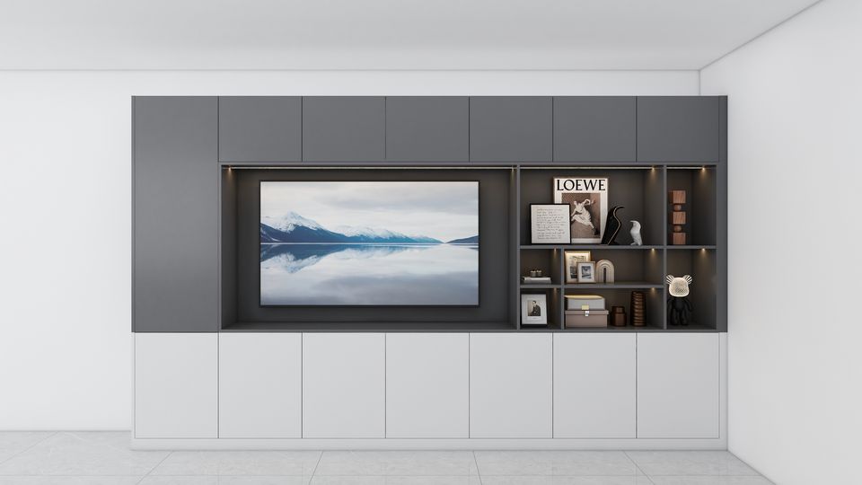 Moderno minimalista TV Stand a parete in legno TV Cabinet con cassetti e luci a LED per soggiorno