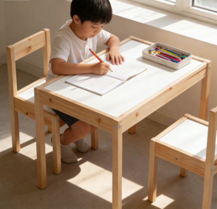 Minimalist Solid Wood Children's Table and Chair Set Ideal for Drawing, Writing and Play