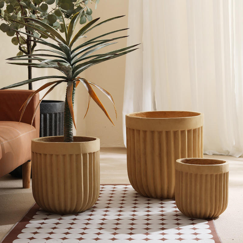 Vaso da Pavimento Minimalista in Ossido di Magnesio a Righe, Grande Vaso per Piante da Interno per Soggiorni, Stile Wabi-Sabi