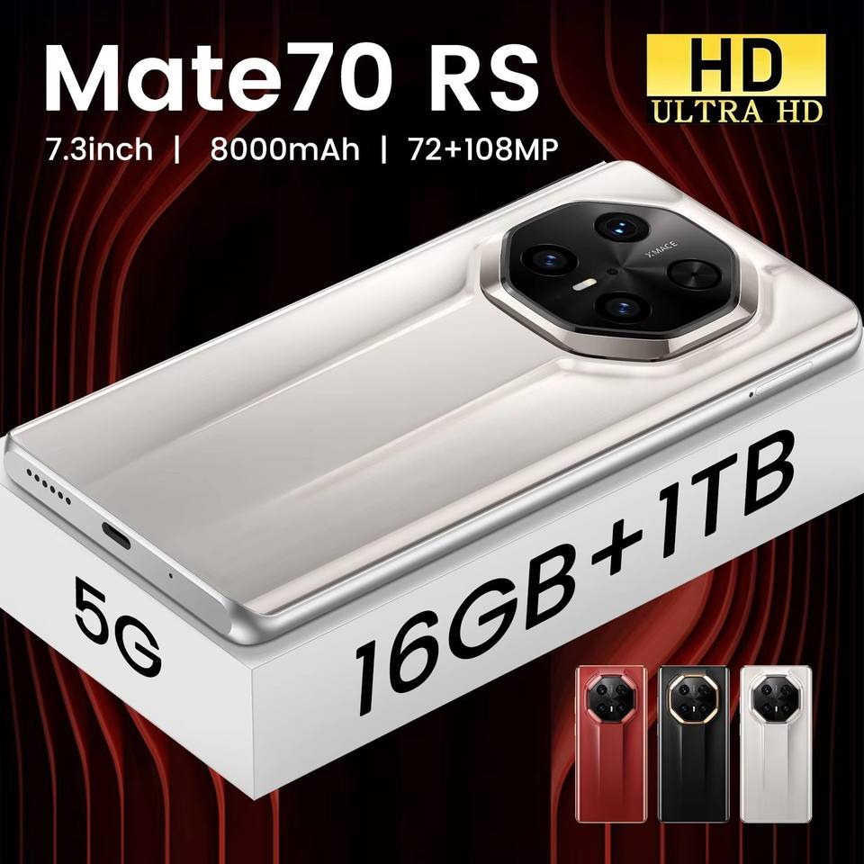 Smartphone Minimalista 5G Mate 70 RS Android14 Deca Core, Schermo da 7,3 Pollici, 16GB+1TB, Fotocamera Posteriore da 108MP