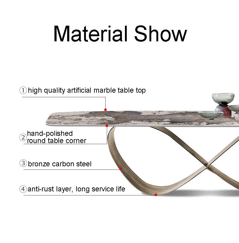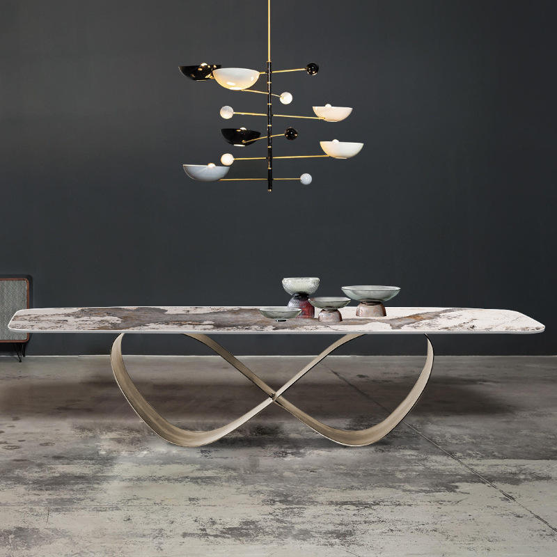 Tavolo da Pranzo Stile Minimalista con Telaio Dorato, Tavolo da Pranzo di Lusso, Tavolo da Sala da Pranzo Moderno in Pietra Sinterizzata