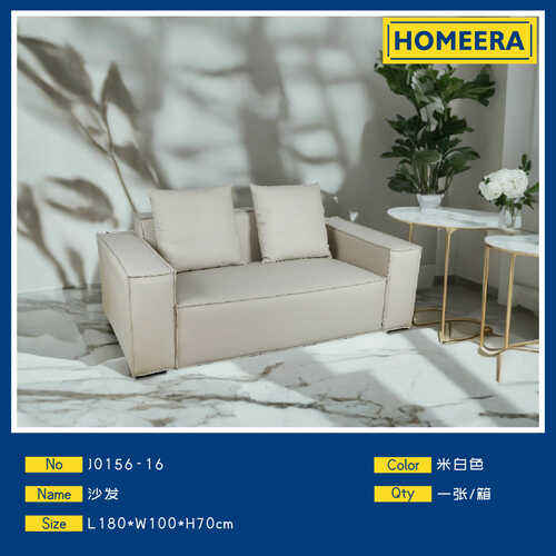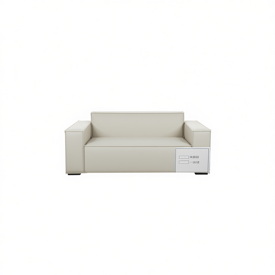 Divano Minimalista a Due Posti in Pelle PU Bianco Sporco con Imbottitura in Schiuma, Mobili per Soggiorno, Braccioli Quadrati, Schienale Rigido, Gambe in Plastica