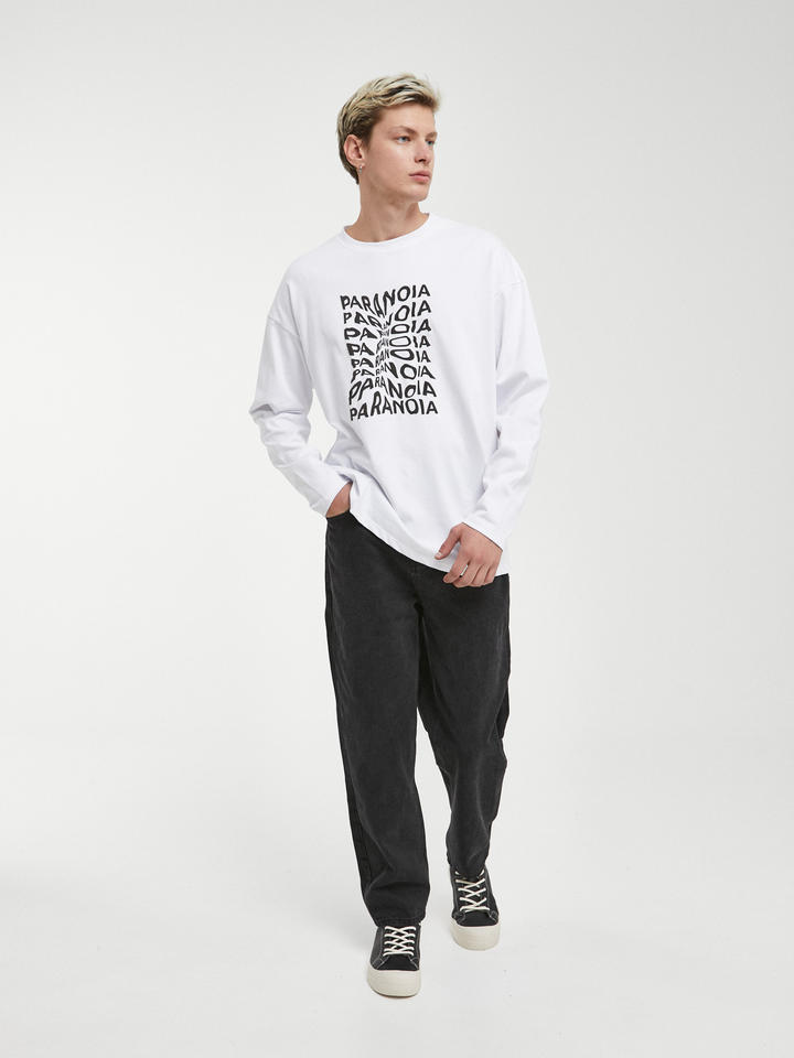 Maglietta da uomo minimalista Oversize accattivante PARANOIA a manica lunga in taglia Negro XS