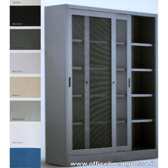 Armadio superiore in plastica di ferro minimamente progettato con porte scorrevoli in rete e 1 ripiano mobile regolabile per uso ufficio o officina