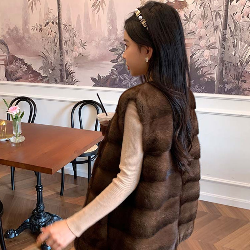 Mink Vest Women Imported Full Skin Fur Knitted Eco-Friendly Sleeveless O-Neck Jacket Sweet Style 2025 Versatile Spring Fall