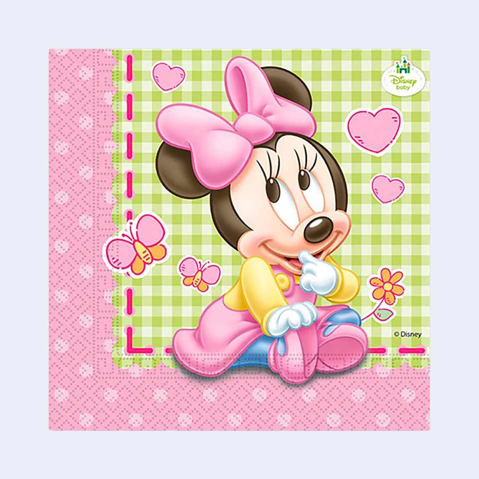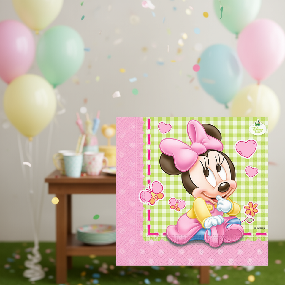 Tovaglioli Usa e Getta per Feste a Tema Minnie Mouse, 2 Veli, 33x33cm, 20 Pezzi, Design Rosa e Verde