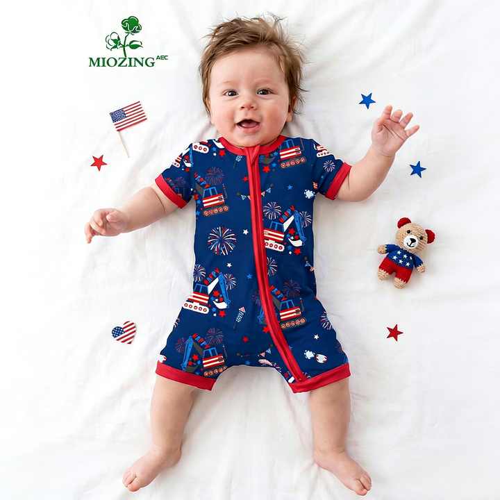 Miozing Pigiama personalizzato per neonati 4 luglio, vestiti per neonati maschi da 3 a 5 mesi, pigiama intero in bambù per eczema, ODM