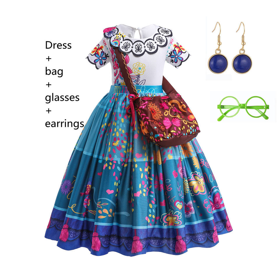 Mirabel TV movie Cosplay Costume Kids Children Fancy Carnival Halloween Princess Dress UP Encanto Madrigal Dress