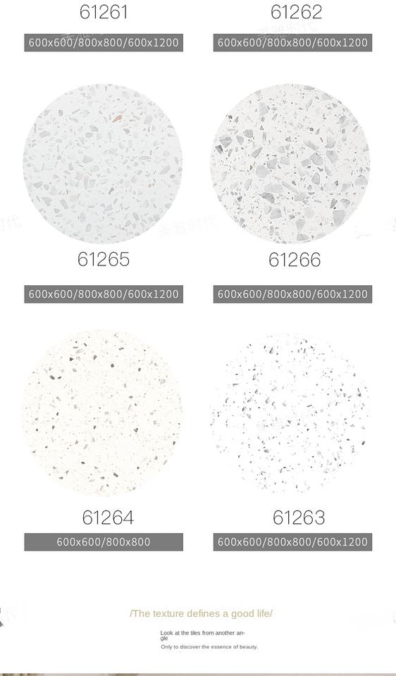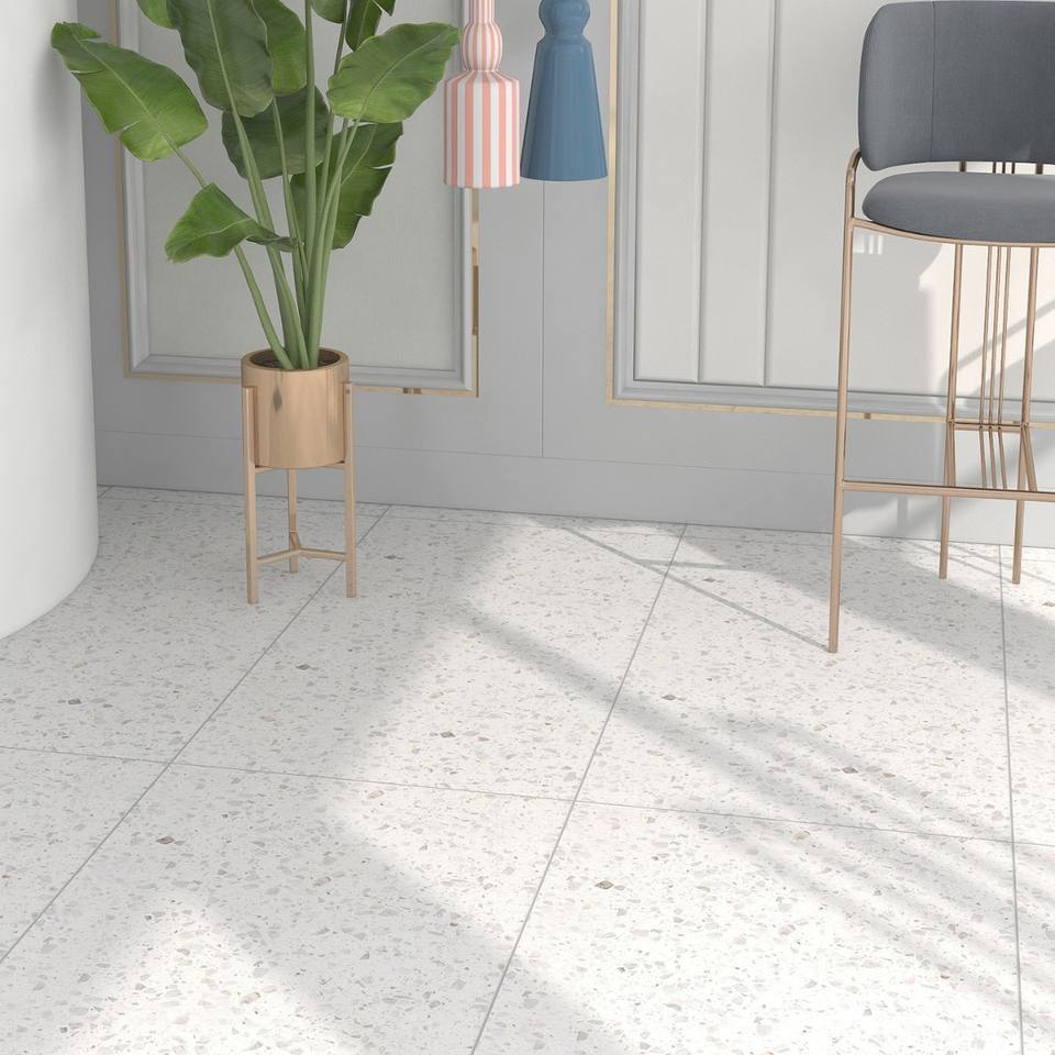 Mirabella Modern White Terrazzo Glazed Metallic Ceramic Floor Tiles Stone Imitation Texture Acid-Resistant for Dining Areas