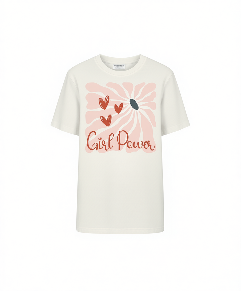 Mireiaerola Girl Power T-Shirt Women's Casual Floral Print Crew Neck Short Sleeve 100% Cotton Regular Fit Statement Shirt