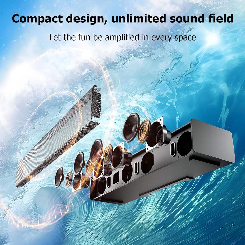 Sistema Soundbar Miroir 5.1 Dolby Atmos: 410W con Subwoofer Wireless e 2 Altoparlanti Posteriori per un Home Theater Immersivo, HD EARC/Opt/BT