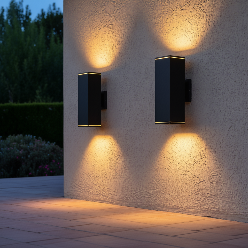 Applique da Esterno Mirrea 12 Pollici in Alluminio Rettangolare Impermeabile LED per Patio e Giardino Nero Opaco con Vetro Temperato