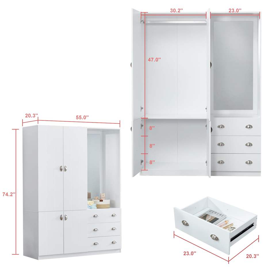 Specchio bianco doppio armadio e cassettiera porte scorrevoli parete armadio piccolo armadio con cassetti