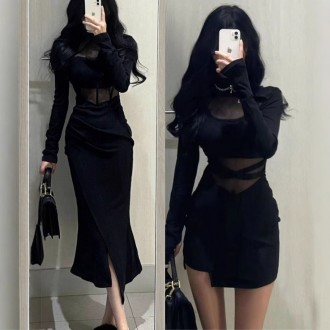 Miss Micro's Women's Black One Piece Mesh Bondage Skirt Pure Mature with Ass Bag Tight Fit and See-Through Design
