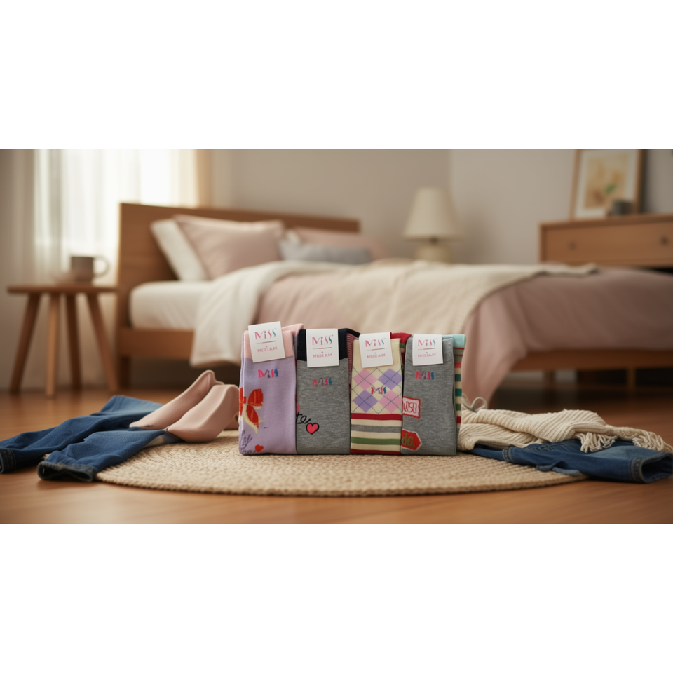 Miss Miriam Women's Cotton Blend Crew Socks Digital Print Breathable Casual Daily Wear Knitted Regular Style Spring Season