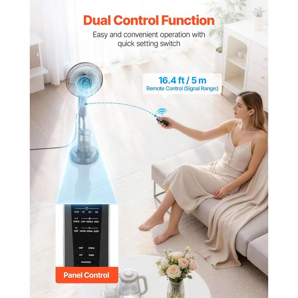 Misting Standing Fan with 3 Wind Speeds & 0.79 gal Water Tank Remote Control Outdoor Cooling Fans