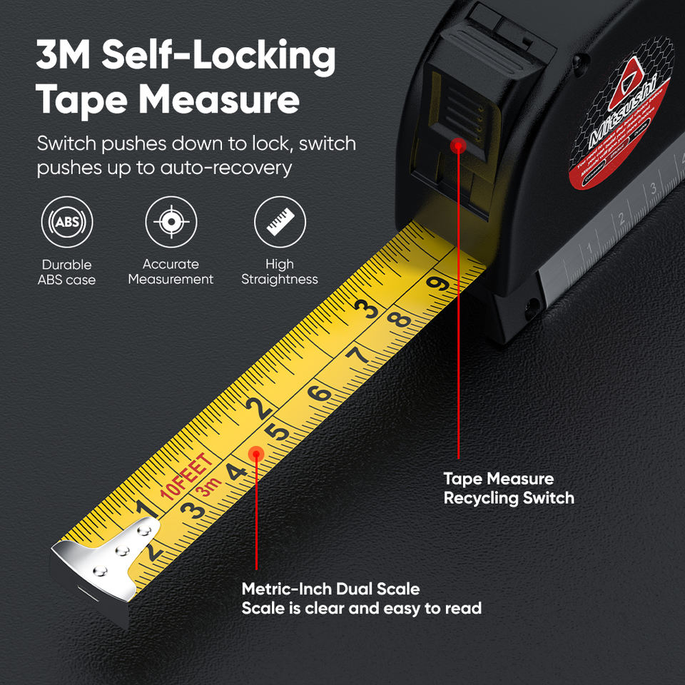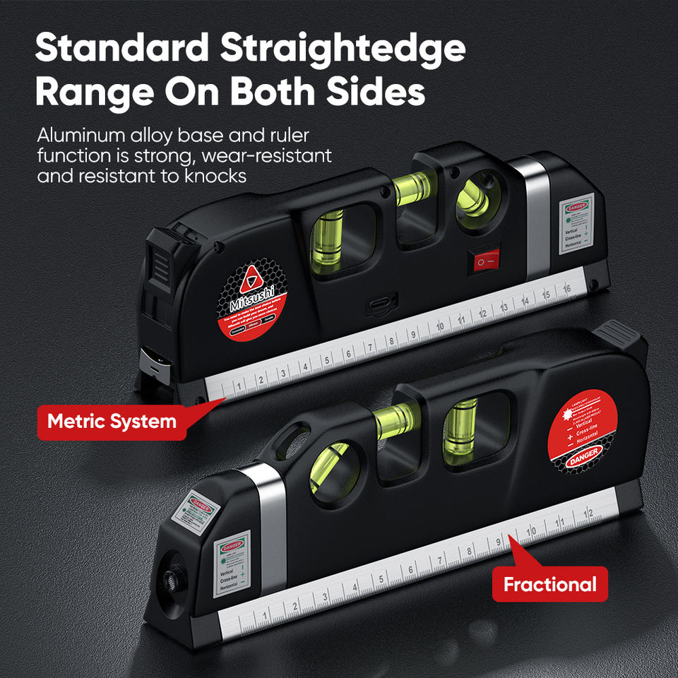 Mitsushi Laser Level Scale Horizon Vertical Measure 8FT Aligner Standard and Metric Ruler Multipurpose Measure Level Laser Meter