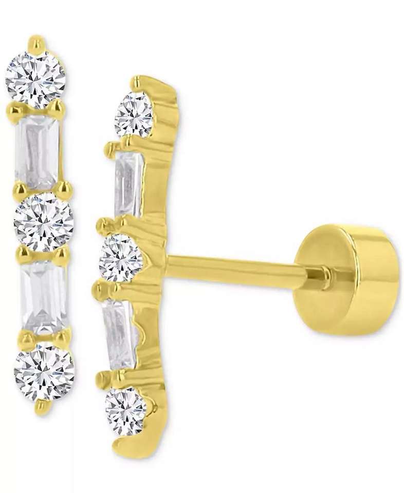 Orecchini misti con barra di zirconi cubici (5/8 ct. T. w.) in argento Sterling placcato oro 14k | Macacy's