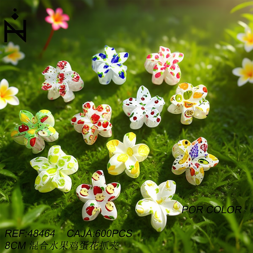 Fermaglio per capelli Angelina con frutta mista e fiore di frangipani, 8 cm, accessorio per capelli da donna, casual, alla moda, in resina.