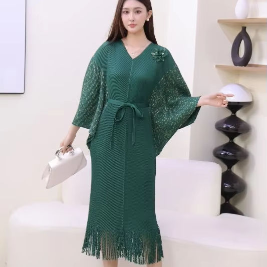 Abito a pieghe Miyake nuovo stile 2025 tutte le taglie abbigliamento donna all'ingrosso per taglie grandi