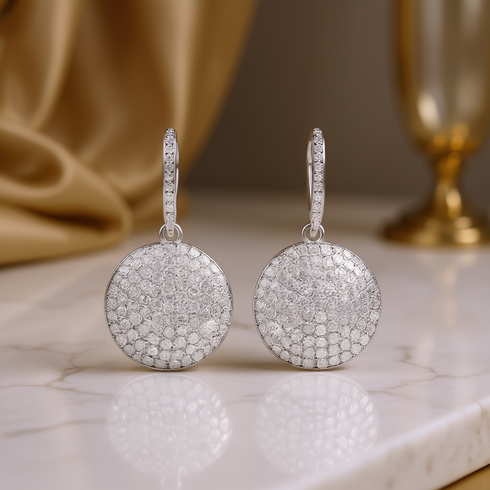 Mk376 Moissanite Drop Earrings White Gold Round Brilliant Cut Micro Insert Women's Luxury Jewelry E1858