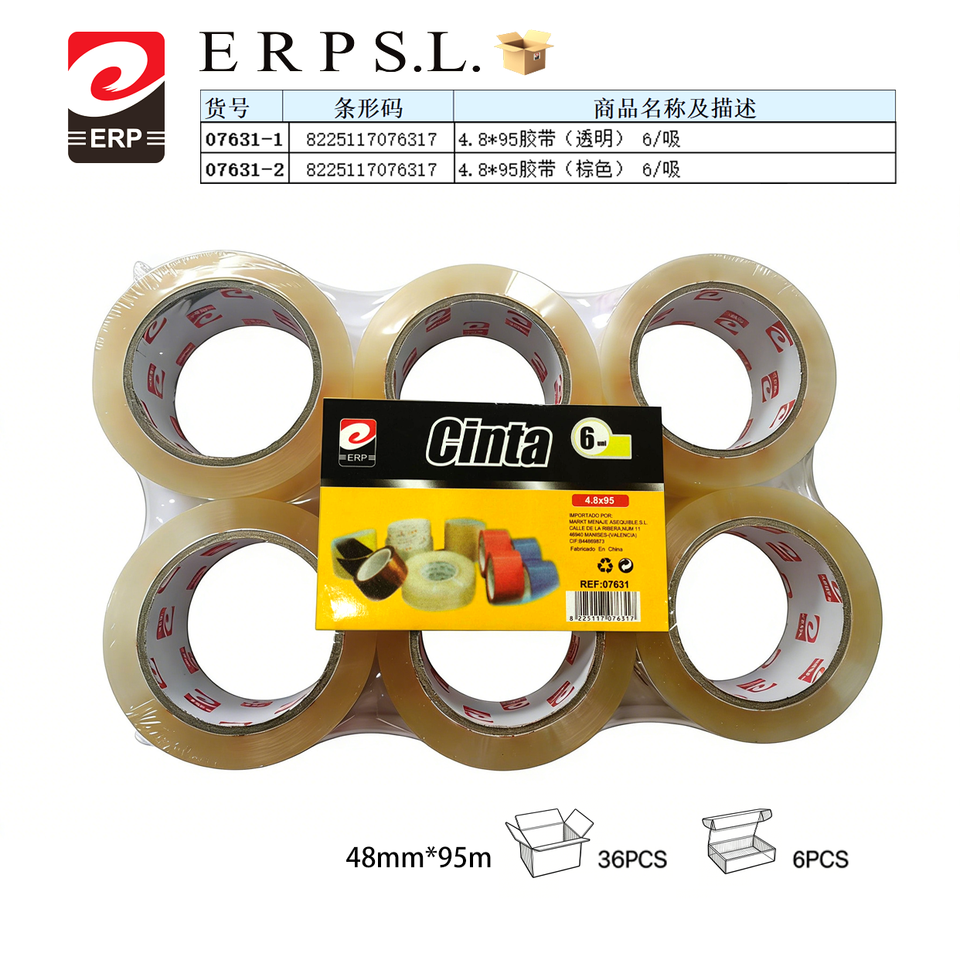 Mnj Cinta Single Sided Pressure Sensitive Acrylic BOPP Tape 4.8Cm X 95M 6Pcs Pack No Residual No Printing Carton Sealing