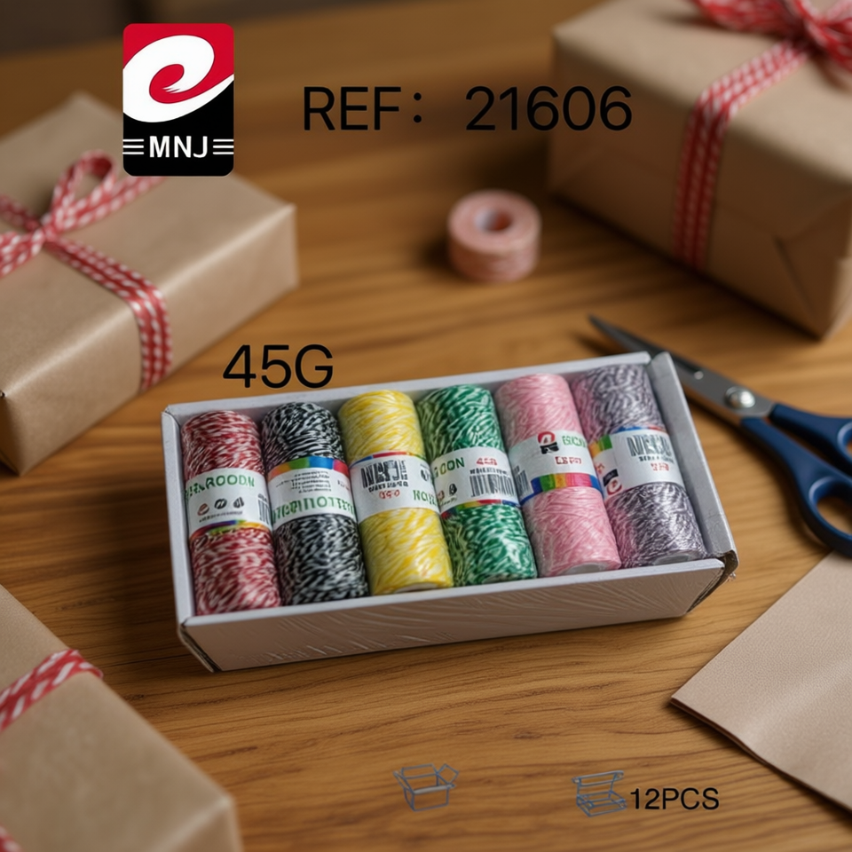 Nastro di cotone colorato Mnj, corda in bobina da 45 g, 12 pezzi, corde per imballaggio