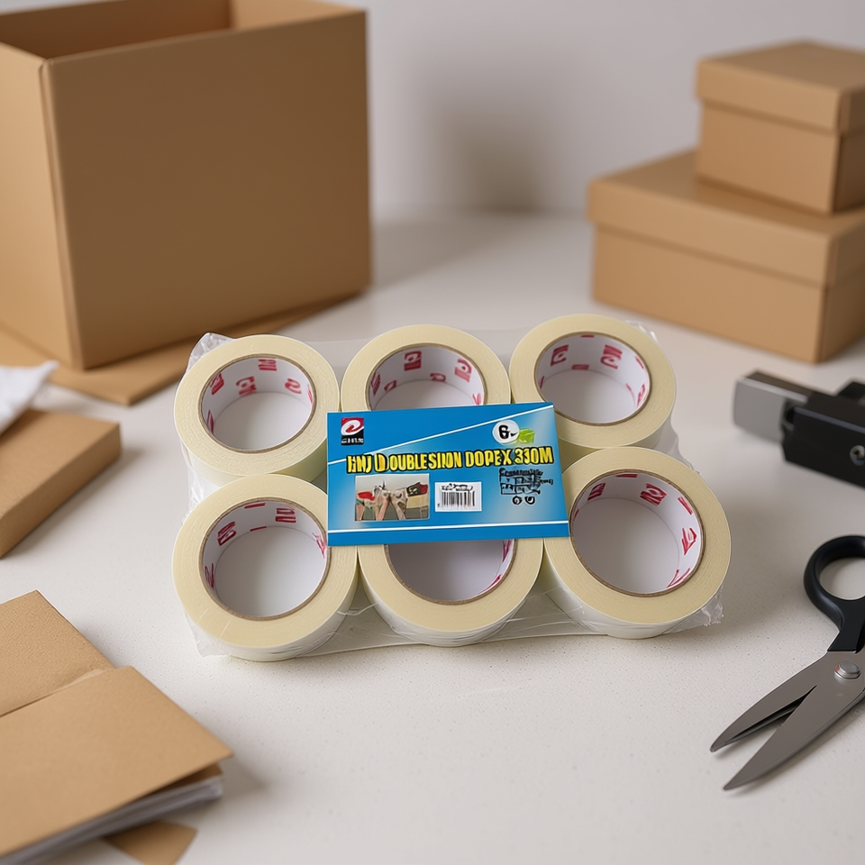 Mnj Acrylic Pressure Sensitive Double Sided BOPP Tape 3.6Cm X 30M No Residual Office Use for Packaging and Fixing 6Pcs Pack