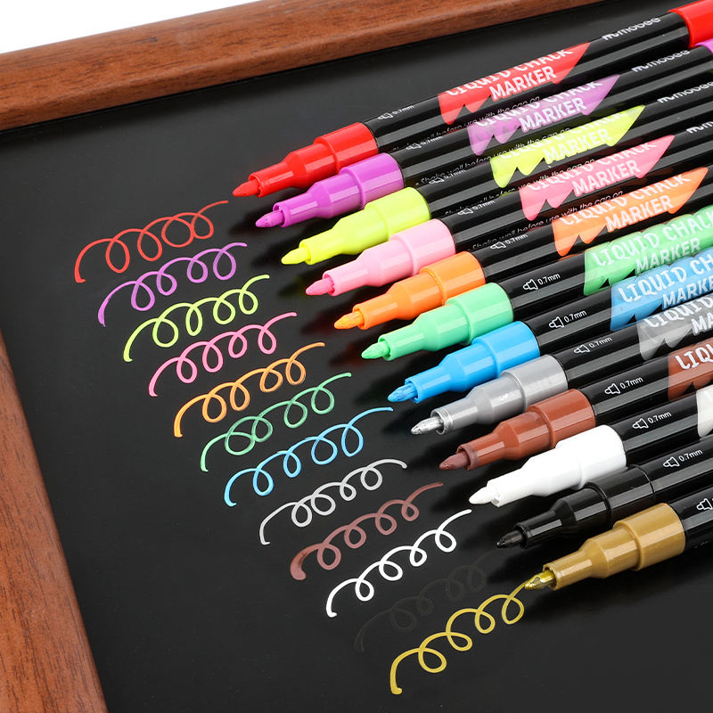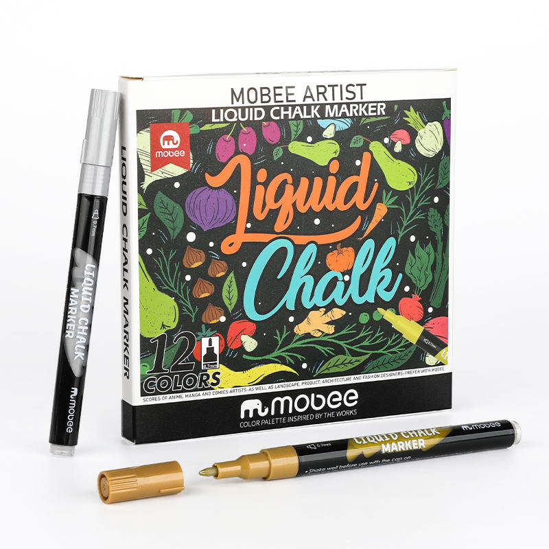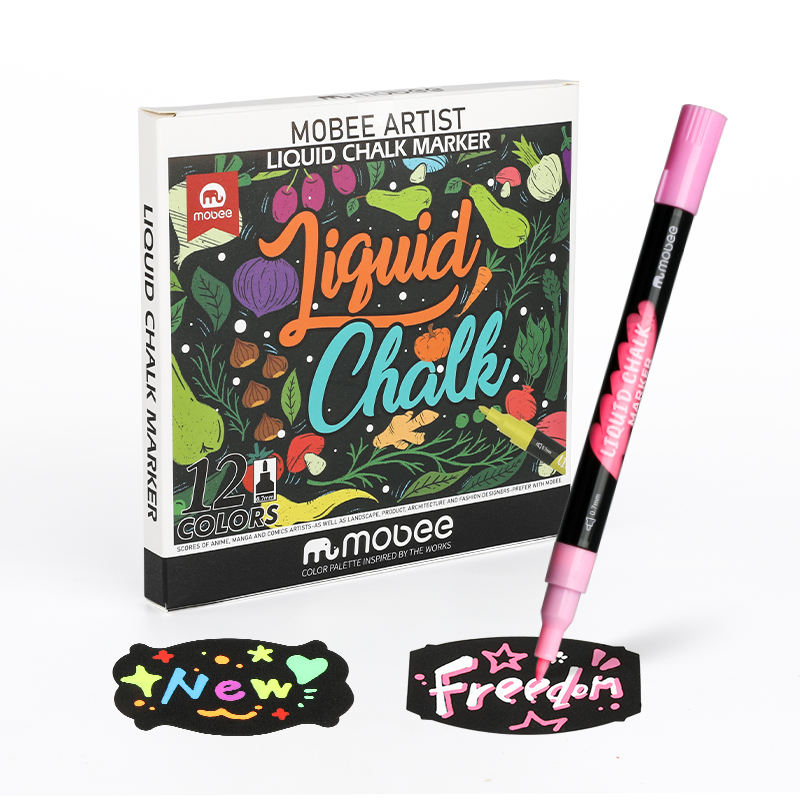 Mobee P-567B/12C Set di 12 Pennarelli a Gesso Liquido con Valvola Unica, Grande Capacità, per Studenti, Disegno a Base d'Acqua