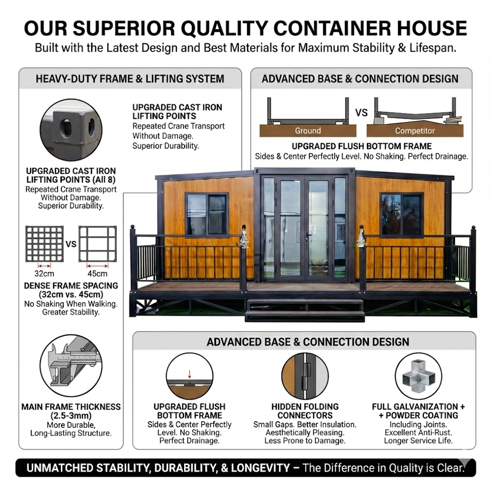 Casa Container Mobile 40Ft, Piccole Abitazioni Moderne di Lusso, Casa Prefabbricata con 4 Camere da Letto, 3 Camere da Letto Disponibili