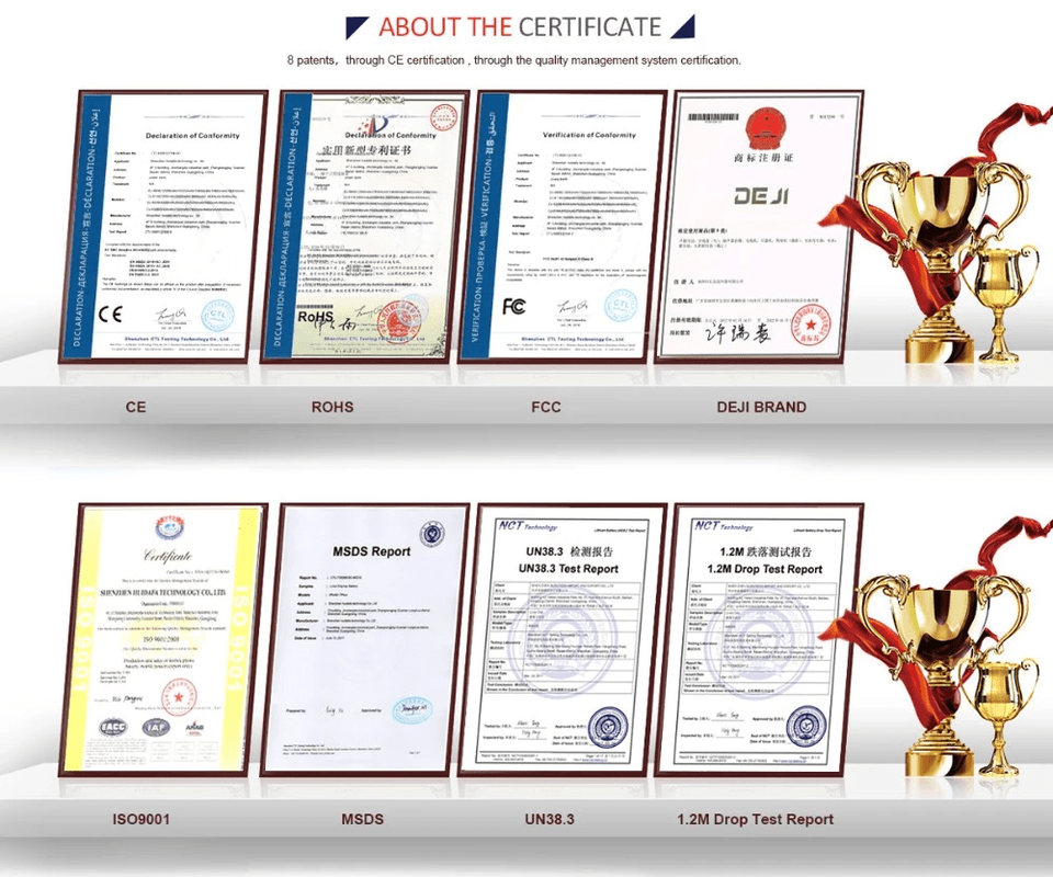 CE,FCC,RoHS,PSE,KC,TIS,MSDS,UN38.3,IEC62133,ISO9001etc.
