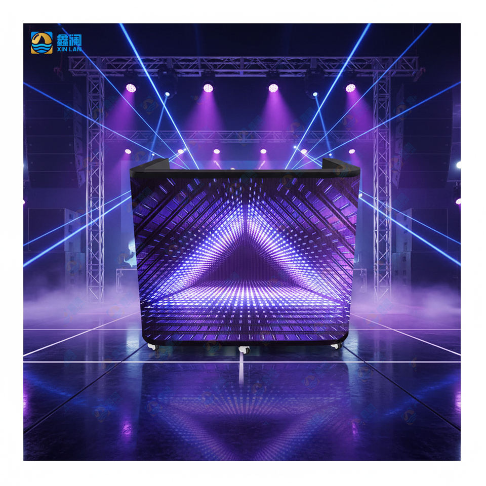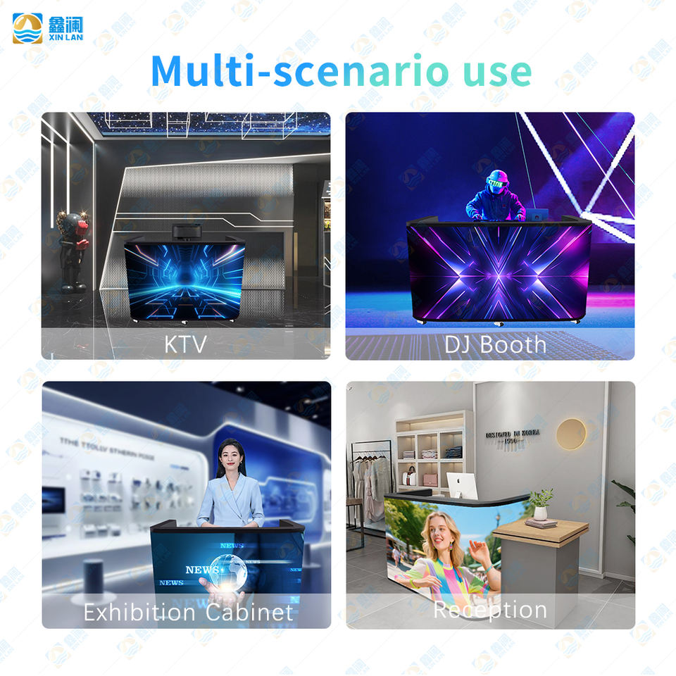 Stand per DJ con Schermo LED Curvo Mobile, Tavolo Portatile Professionale, Console DJ, Podio, Parete Video, TV