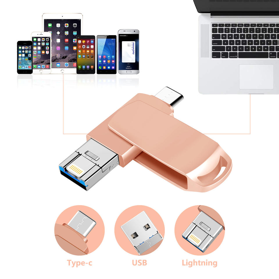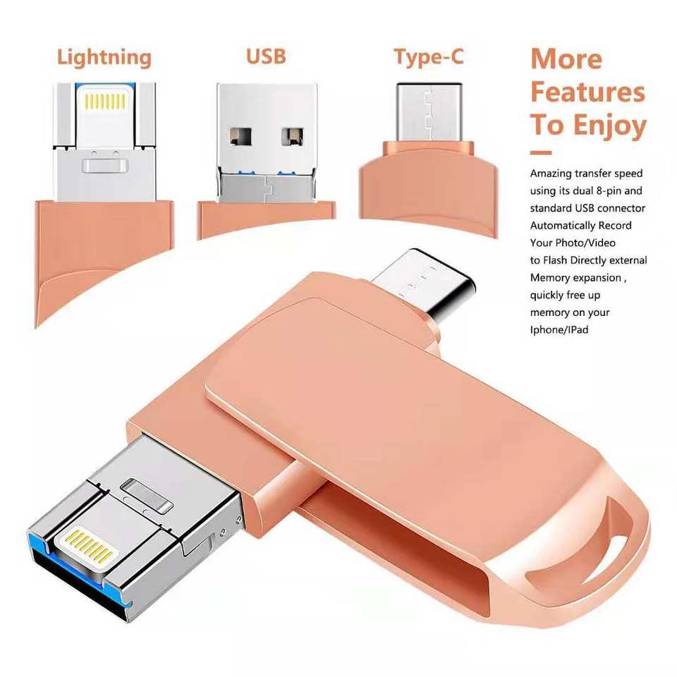 Chiavetta USB 3-in-1 Mobile IOS 3.0 Tipo C da 32GB 64GB 128GB Dispositivo Flash Drive per iPhone Lightning OTG